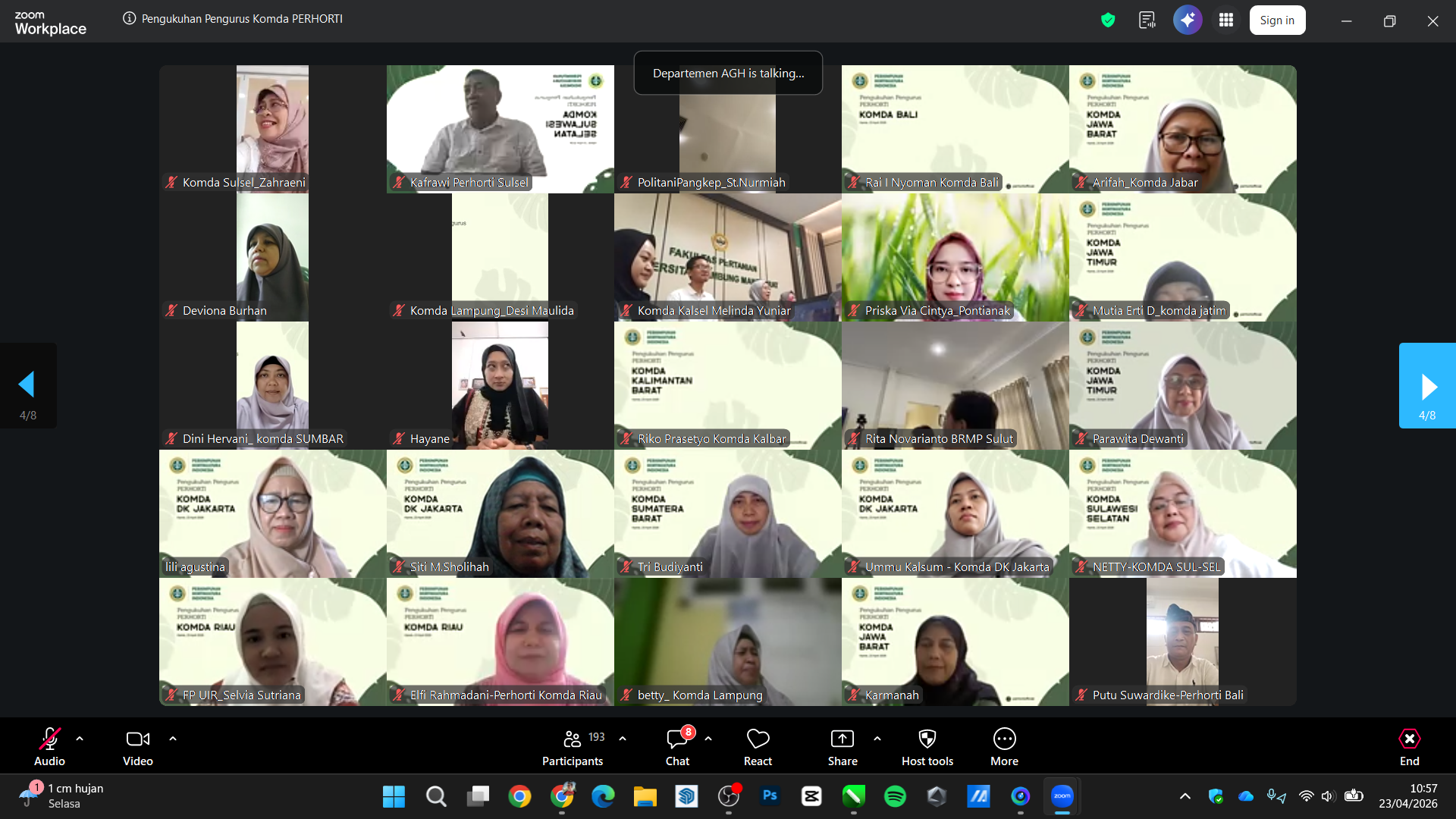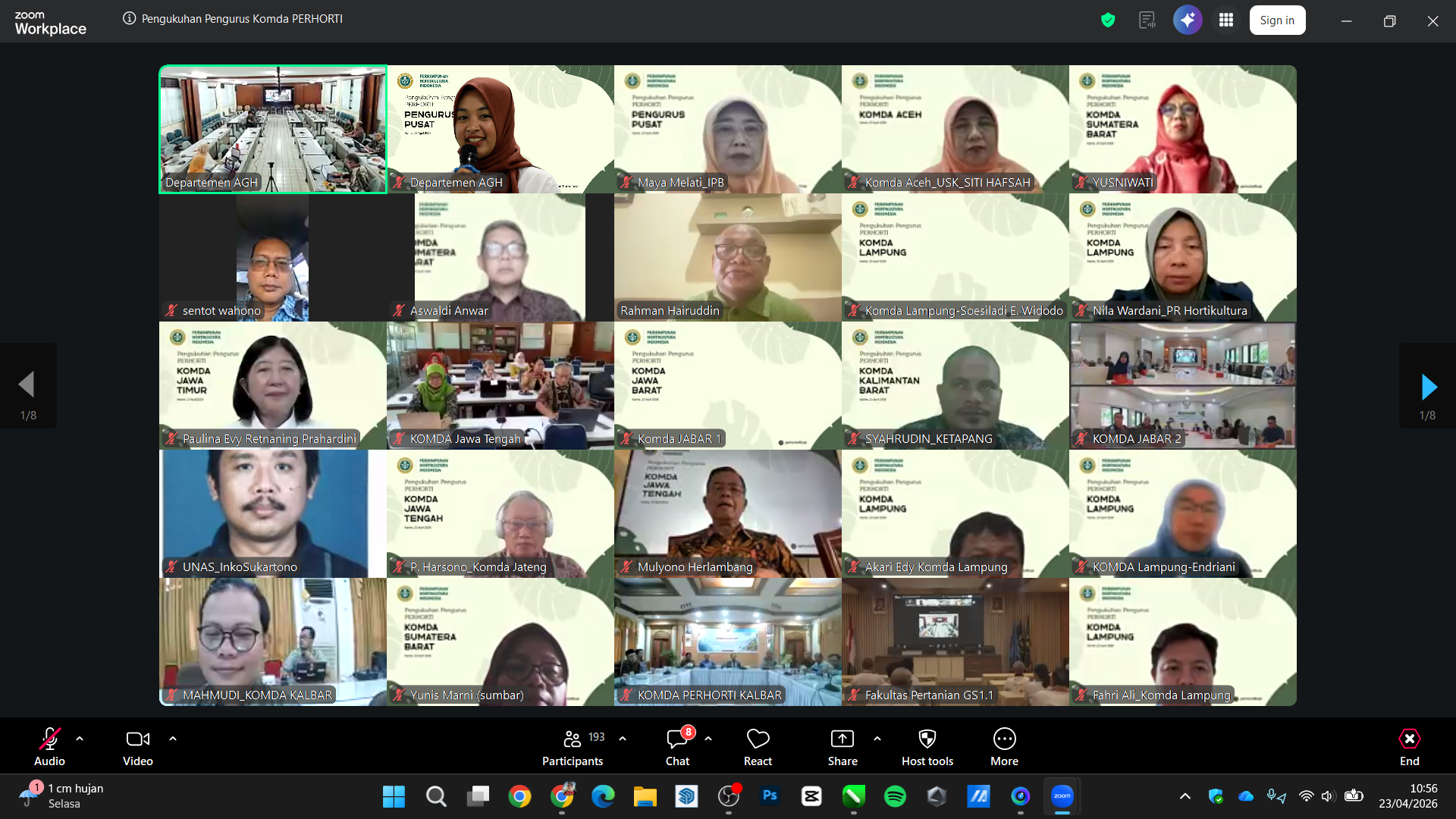 Pengukuhan dilakukan oleh Ketua Umum Perhorti Prof Dr. Dewi Sukma, S.P. pada Kamis, 23 April 2026. Dewi dan pengurus berada di kampus Institut Pertanian Bogor (IPB). Para pengurus tersebar di berbagai lokasi. Oleh karena itu, pengukuhan dilakukan secara secara daring. Dewi mengukuhkan pengurus 15 Komda Perhorti, dua di antaranya merupakan Komda baru, yakni Daerah Khusus Jakarta dan Riau.