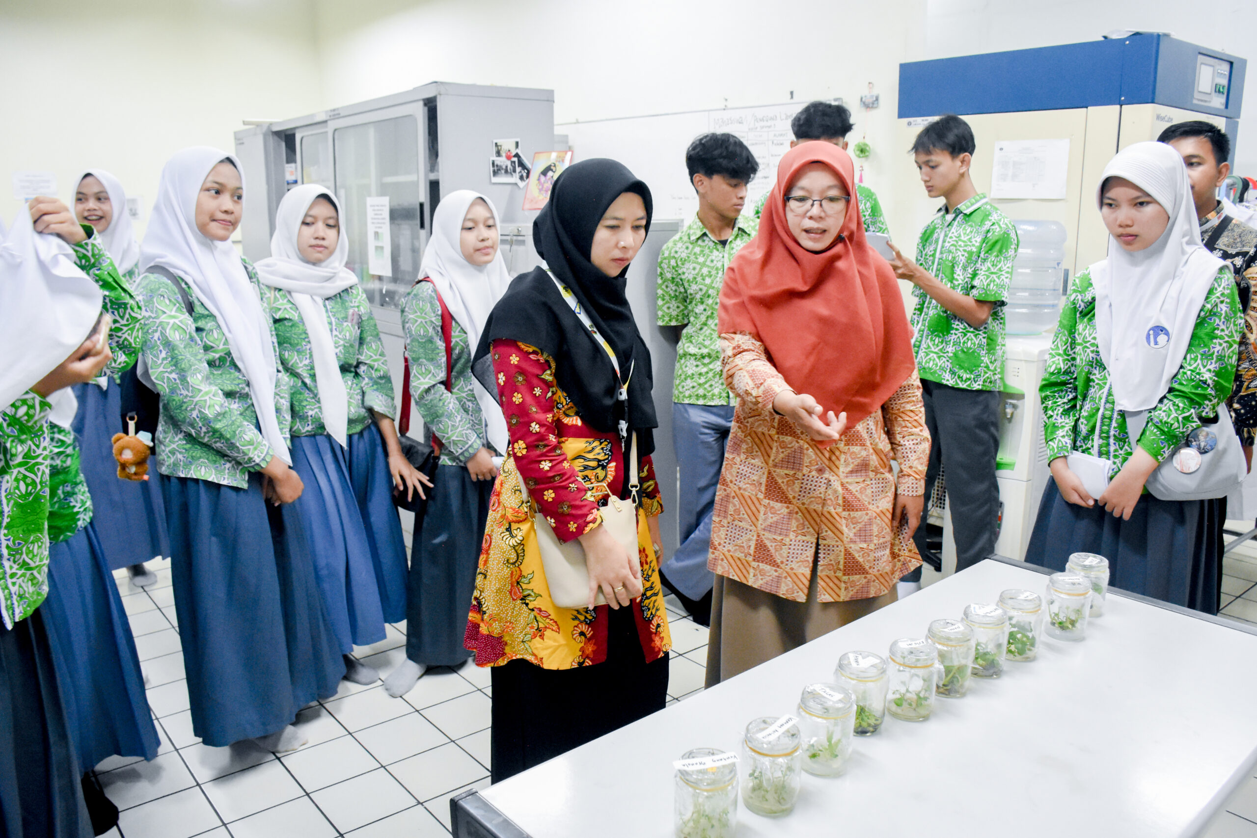 Para siswa diajak mengunjungi Laboratorium Kultur Jaringan, di mana mereka dapat melihat secara langsung bagaimana ilmuwan mengembangkan varietas unggul dan memperbanyak tanaman.