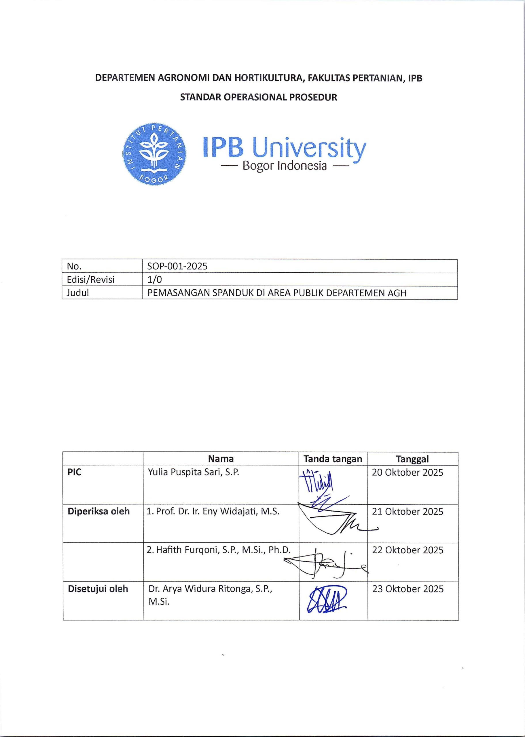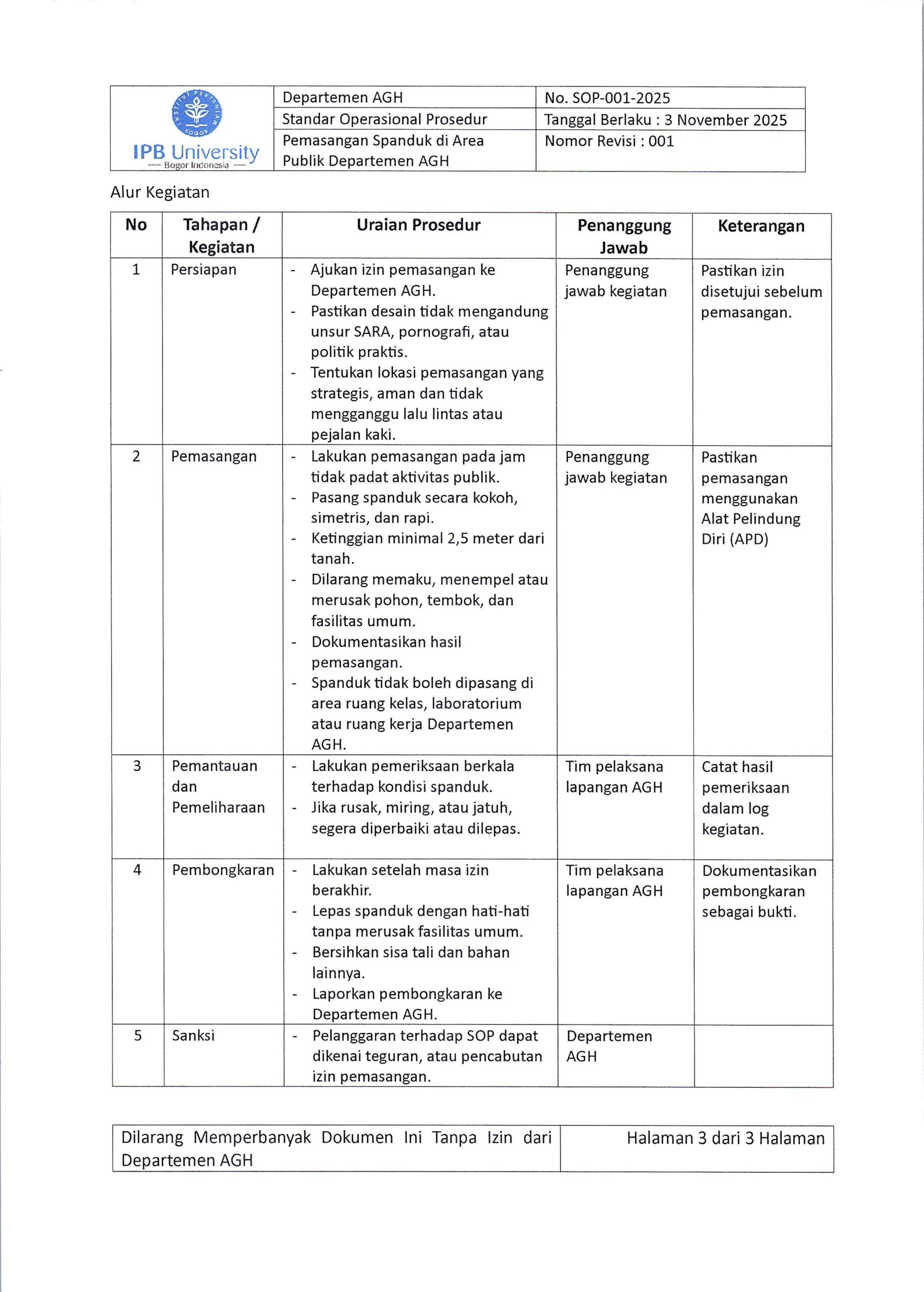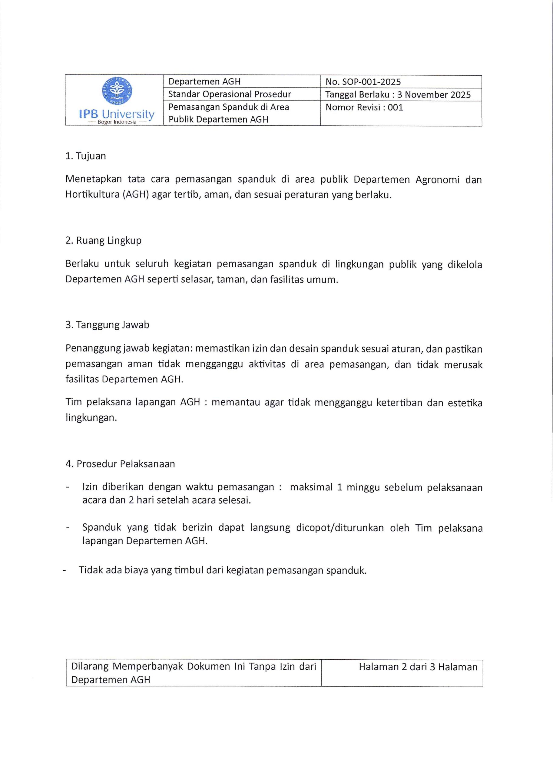 SOP Pemasangan Spanduk di Area Publik Departemen AGH