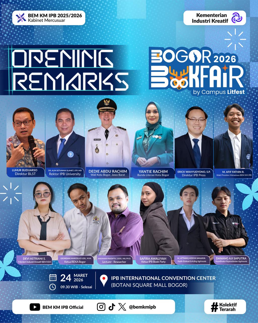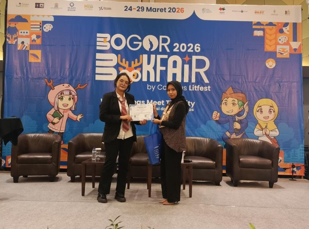 IPB Book Party participated in the IPB Book Fair, held on 24–29 March 2026 at the IPB Convention Center. The community was represented by Safira Awaliyah Ramadhani and Dewi Sukma, master’s students in Plant Breeding and Biotechnology at IPB University, who took part in the Creative Insight Session! on the opening day, 24 March 2026. The session was organized by BEM KM IPB.